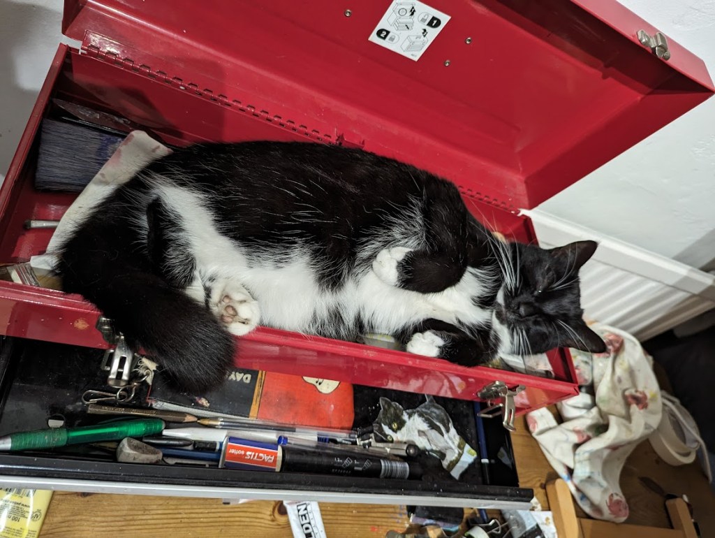 I also like getting to spend a lot more time with the cats, in fact the only thing I dislike is getting artists block. It is like constipation but more prolonged and infinitely more frustrating at trying to get anything out.